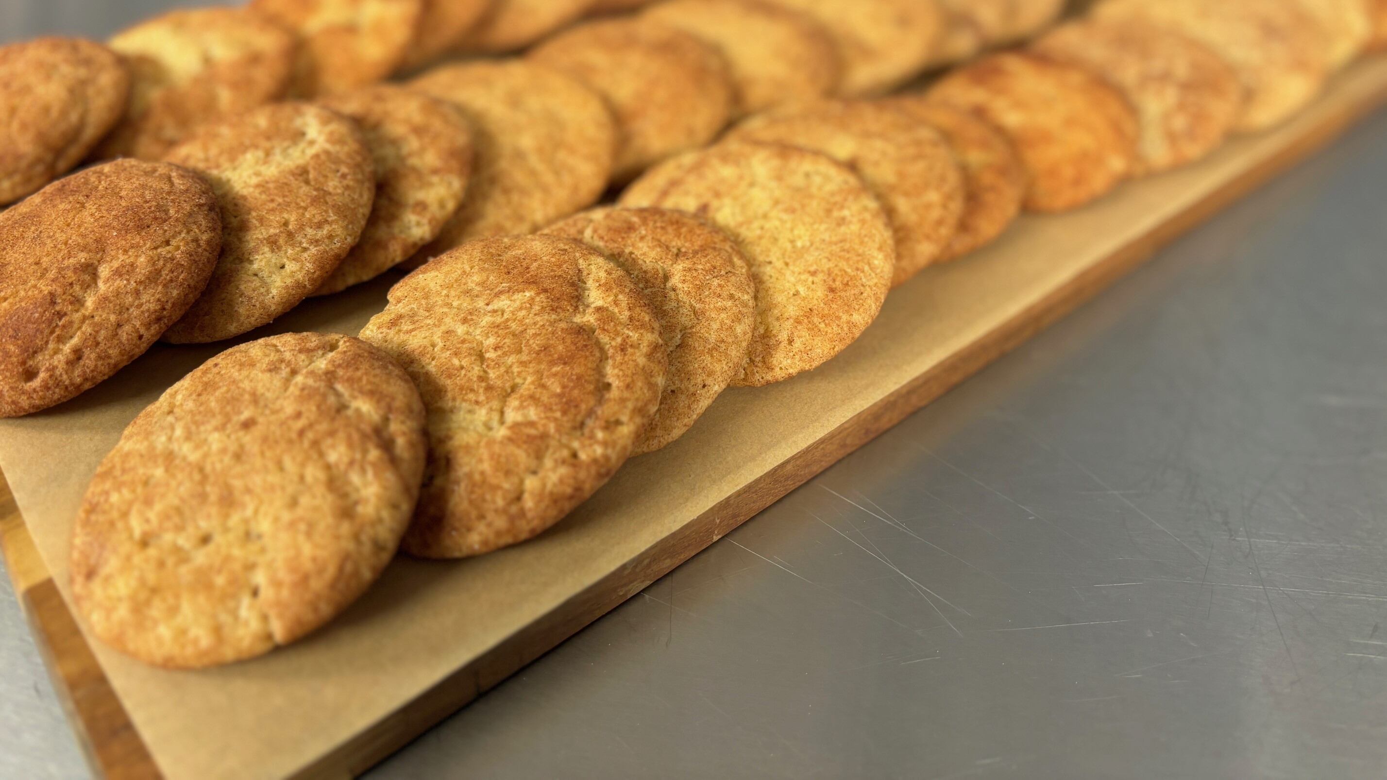 Preheat your oven to 350˚F and line a baking sheet with parchment paper. Combine ⅓ cup granulated sugar and one tablespoon ground cinnamon for the topping. Remove chilled dough from refrigerator and scoop into 1½ tablespoon-sized portions. Roll into a smooth ball between your palms and coat generously in the cinnamon/sugar mixture. Transfer to the prepared baking sheet, leaving at least 2” between cookies. Bake for 10-13 minutes until golden brown and set on the edges. Cookies may still seem soft in the center. Allow to cool completely on the baking sheet to finish cooking.