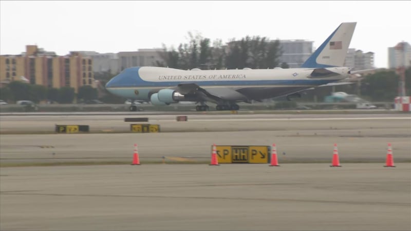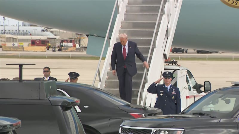Air Force One landed at 12:25 p.m. at Miami International Airport, and Trump got into “the Beast” at 12:40 p.m.