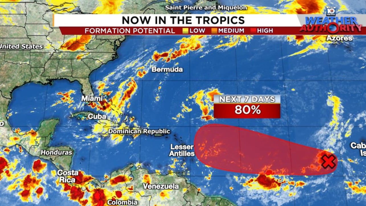 Una ola tropical sobre el Atlántico oriental – designada INVEST 91L por el Centro Nacional de Huracanes a primera hora del jueves – se está organizando mejor y es probable que se convierta en una depresión tropical o tormenta nombrada para este fin de semana a medida que se mueve lentamente hacia el oeste.