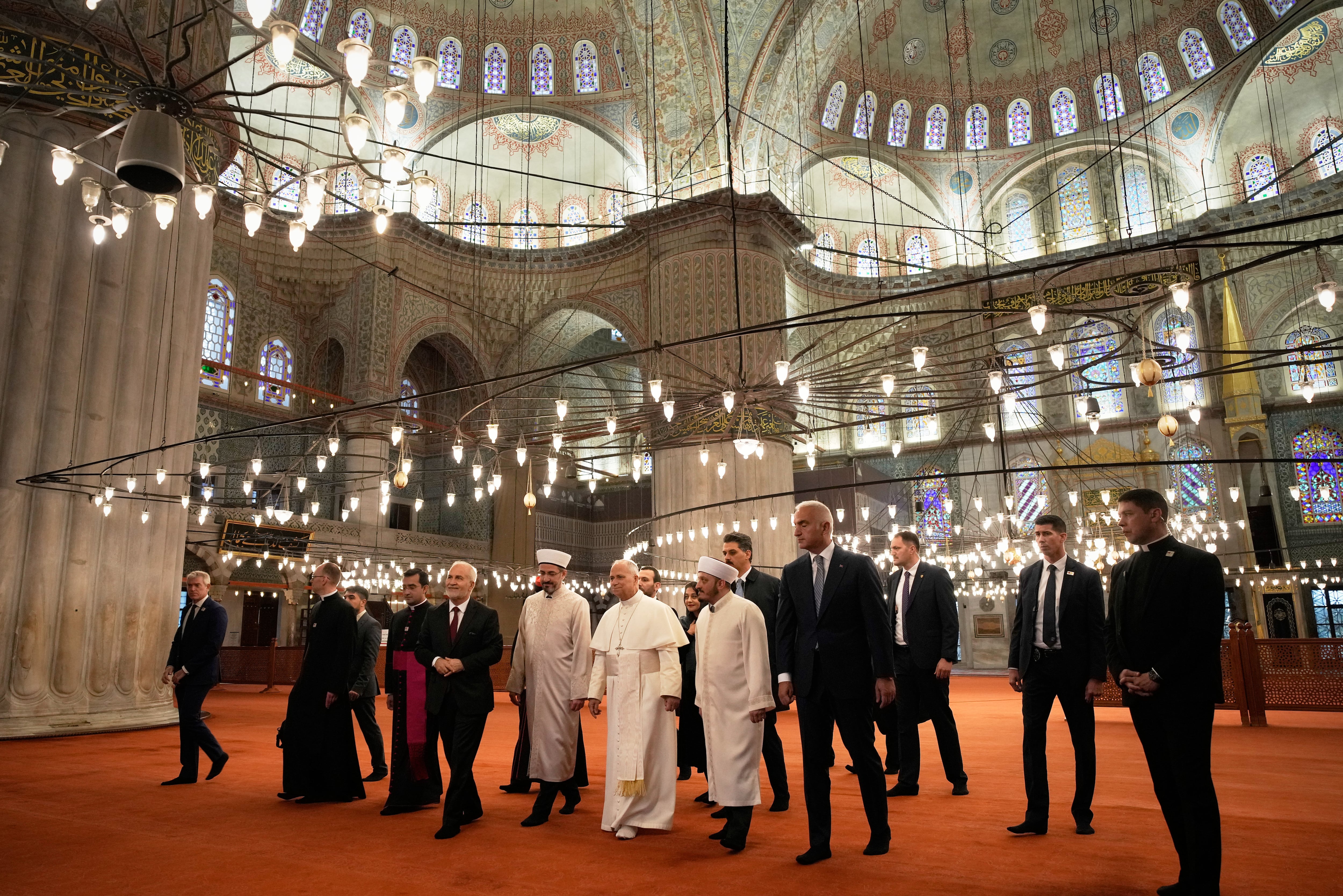 Leo was following in the footsteps of his recent predecessors, who all made high-profile visits to the Sultan Ahmed Mosque, as it is officially known, in a gesture of respect to Turkey’s Muslim majority. Leo removed his shoes and walked through the carpeted mosque in his white socks.