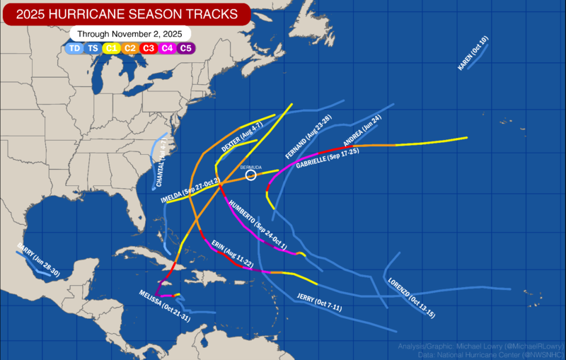 The 2025 Atlantic hurricane season, which officially ends today, was the first season since 2015 to feature no U.S. hurricane hits, but a season simultaneously marred by more Category 5 hurricanes than any season besides 2005, including Hurricane Melissa, which struck Jamaica on October 28th as the strongest landfalling Atlantic basin hurricane on record.