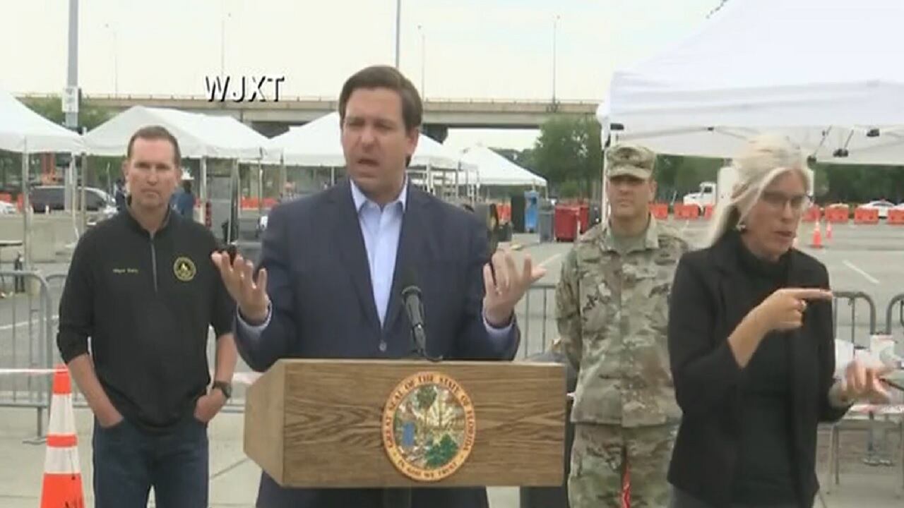 JACKSONVILLE, Fla. — Gov. Ron DeSantis held a news conference Friday afternoon at the Jacksonville Jaguars coronavirus testing site at TIAA Bank Field.
