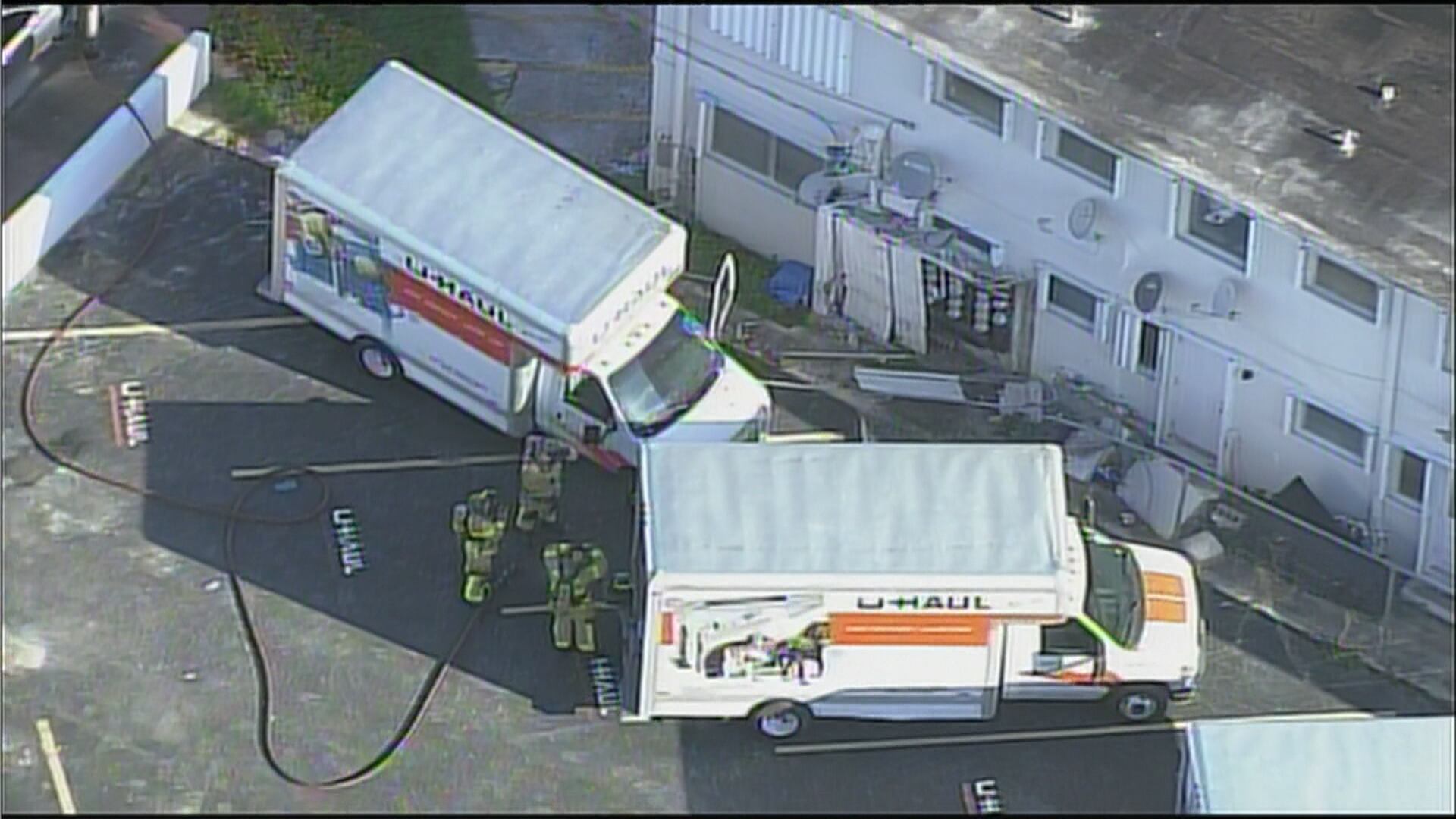 Sky 10 was above the scene at 8:40 a.m. Thursday as two U-Haul vehicles were stopped next to a building.