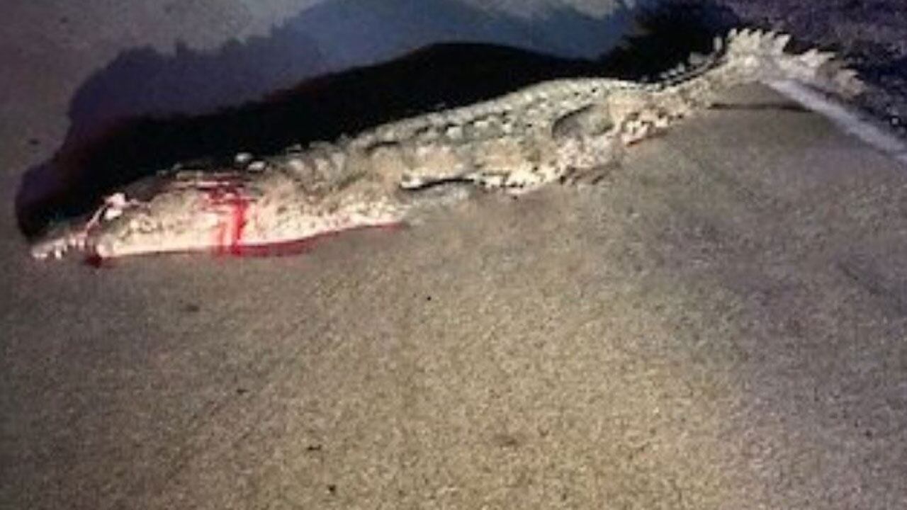 Deputies suspect a driver struck and killed the crocodile. They are asking drivers to drive slowly in the area.
