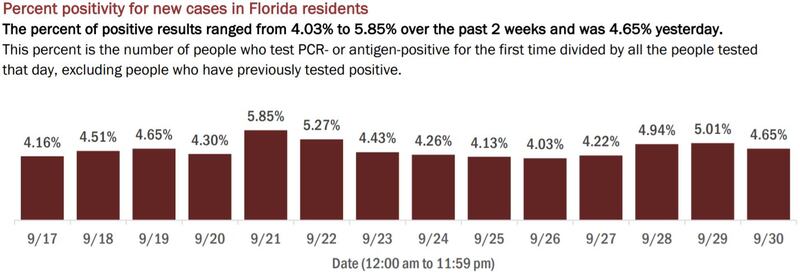 The statewide positivity rate from yesterday’s testing was 4.65%, according to the health department. The 14-day average is 4.6% and the 7-day is 4.46%.