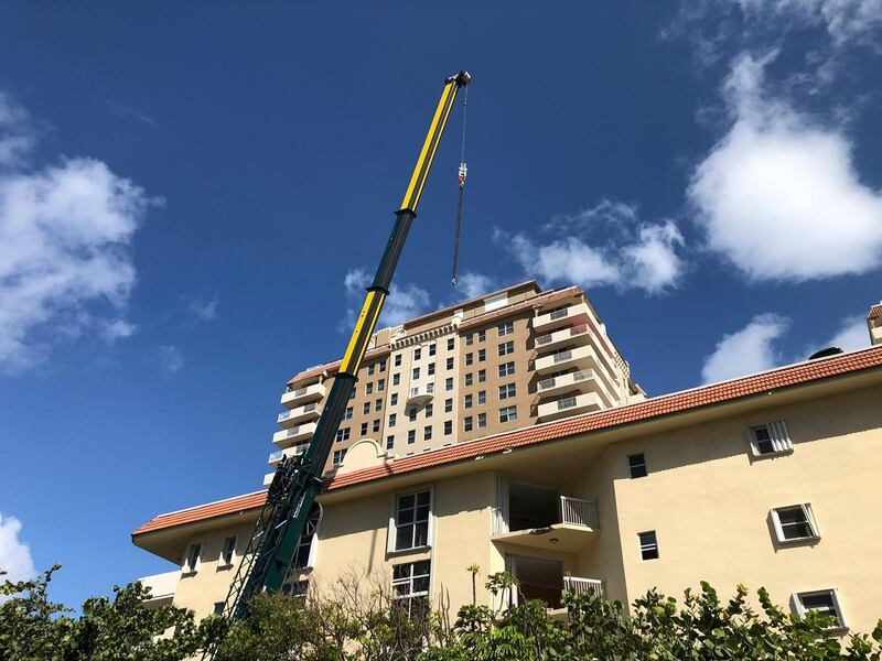 Local 10 News reporter Jeff Weinsier was at the scene and said the piece of equipment had been hoisted to the fourth floor. He said the worker then got inside when it suddenly came crashing down.