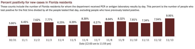 It’s also worth noting that the number of cases reported could be affected by several testing locations being closed temporarily because of Tropical Storm Eta.