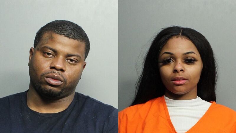 MIAMI BEACH, Fla. — A man and a woman from Chicago were arrested early Thursday morning in Miami Beach after one of them struck a police vehicle with a bottle of Hennessey, leading to a confrontation with the police sergeant who was driving the car, authorities said.