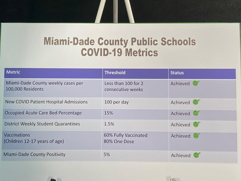 The change, effective immediately, comes as the county sees a steady decline in infections. Superintendent Alberto Carvalho announced the new policy at a news conference before 2 p.m.