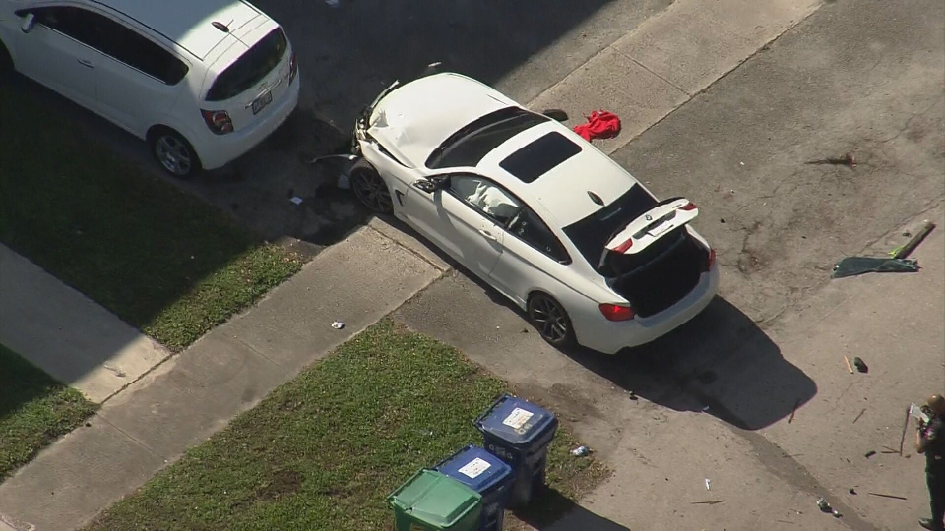 FORT LAUDERDALE, Fla. — A person was injured during a shooting and a car crash on Wednesday in Broward County. Officers are searching for a shooter who fled.