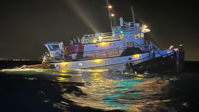 Crew on the 70-foot tugboat named the Sea Eagle sent out a mayday call to watchstanders reporting they were in distress and taking on water, the Coast Guard said. The tug was reported to have approximately 10,000 gallons of diesel fuel on board.