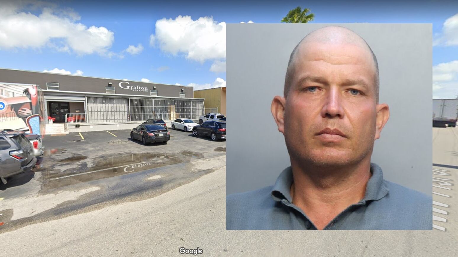 According to a police report, Medina worked as a carpenter at Grafton Furniture at 3401 NW 71st St. and was allowed to live at the business until he was fired in April 2022 after he stopped showing up to work. The report also stated that he had an affair with a co-worker during business hours.