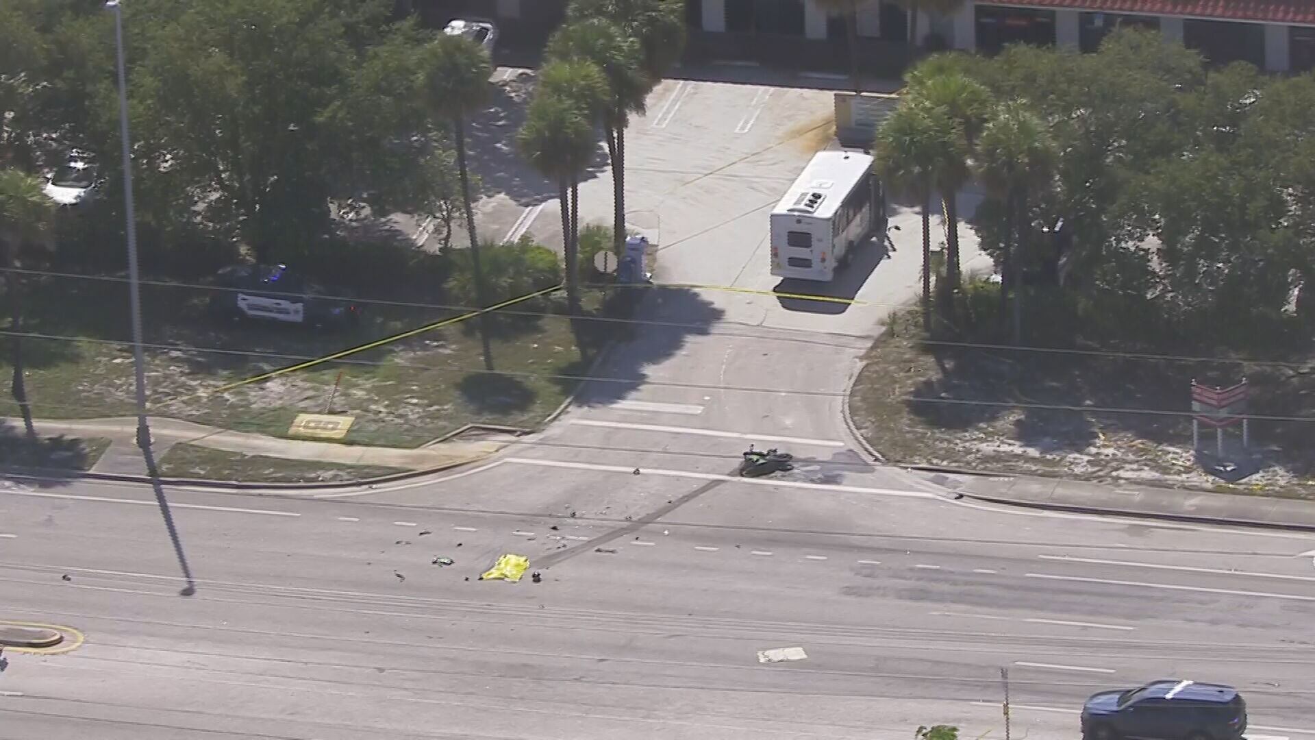 POMPANO BEACH, Fla. — A motorcyclist died following a crash with a Broward County Transit bus in Pompano Beach Tuesday afternoon, according to the Broward Sheriff’s Office.