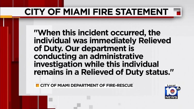 The Miami Fire Rescue Department announced on Monday that the firefighter was relieved of duty after the Oct. 15 incident, which remained under investigation.