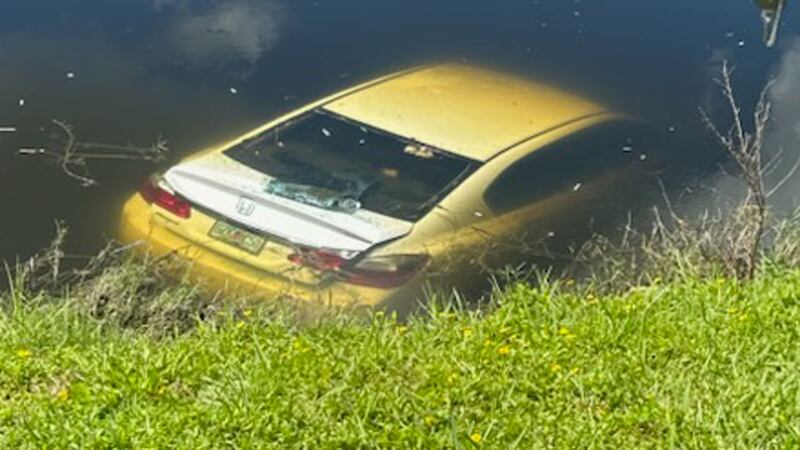 NORTH LAUDERDALE, Fla. — As water levels dropped on Monday, a car turned up submerged in a canal in Broward County.