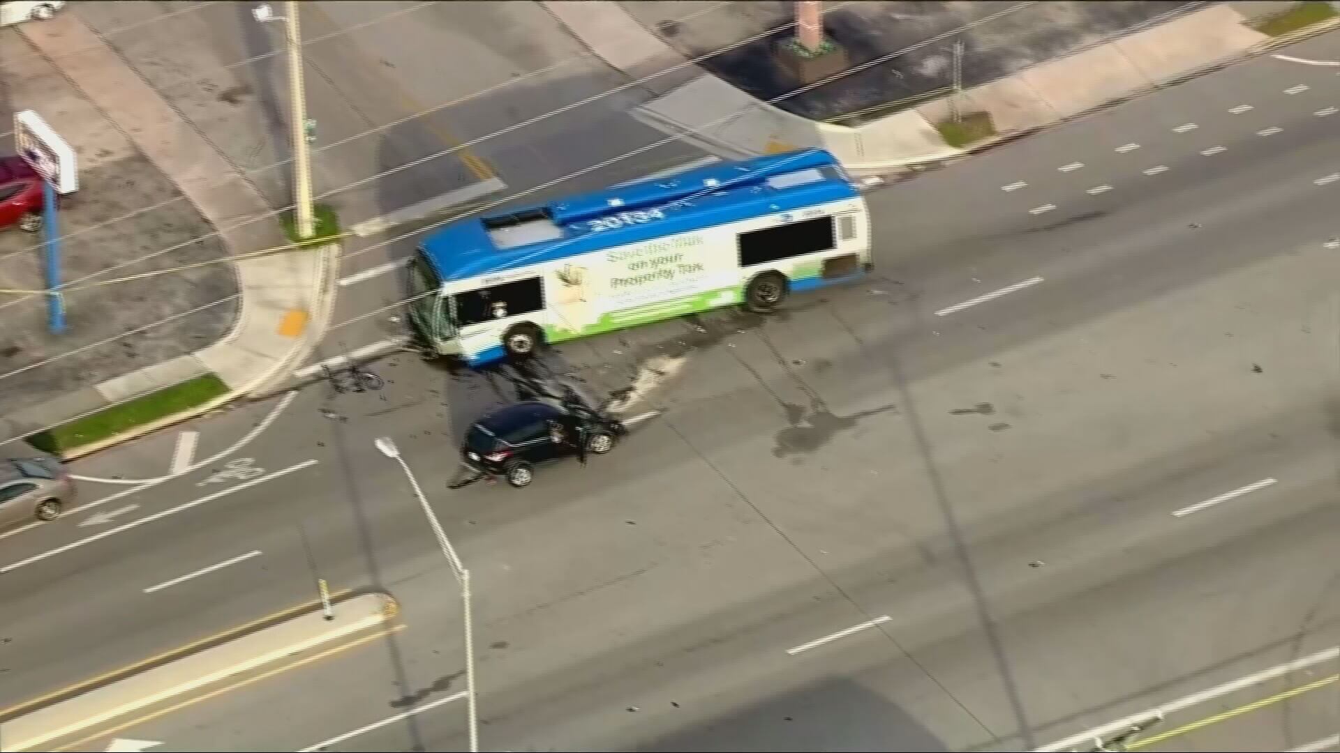 According to Miami-Dade Fire Rescue officials, six people were treated at the scene, including one adult who was transported as a trauma alert to Jackson Memorial Hospital’s Ryder Trauma Center and another who was taken to a local hospital by private ambulance.