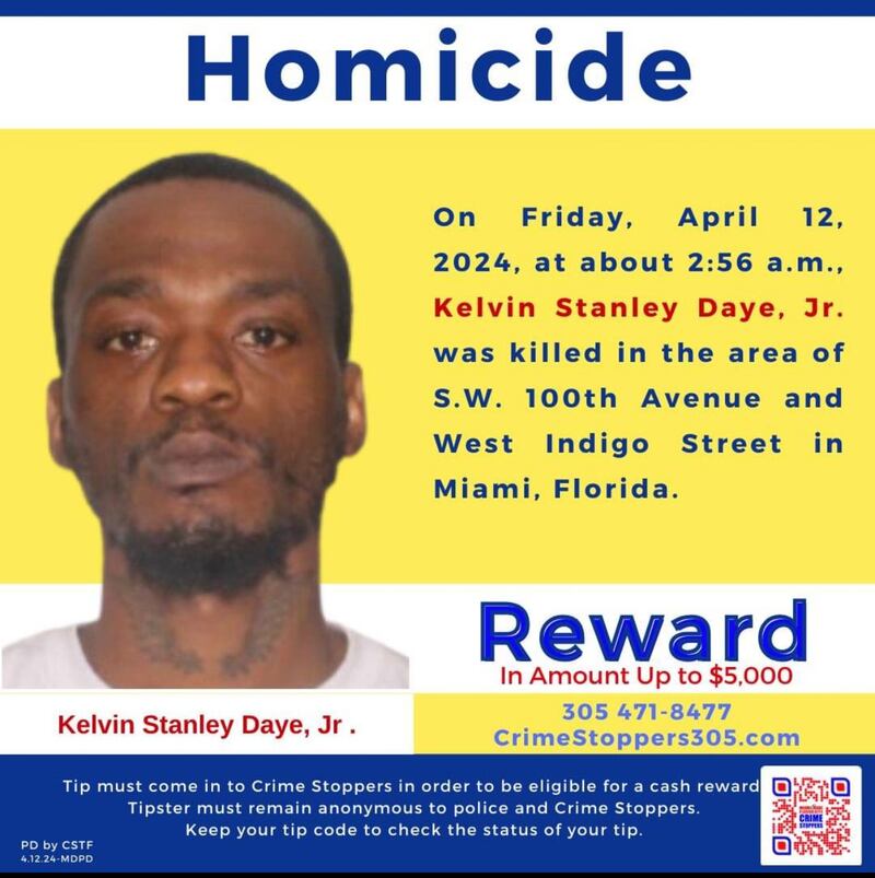 Miami-Dade Fire Rescue personnel transported the victim to Jackson South Medical Center in critical condition, however, the victim later died from his injuries. He was identified as Kelvin Stanley Daye.