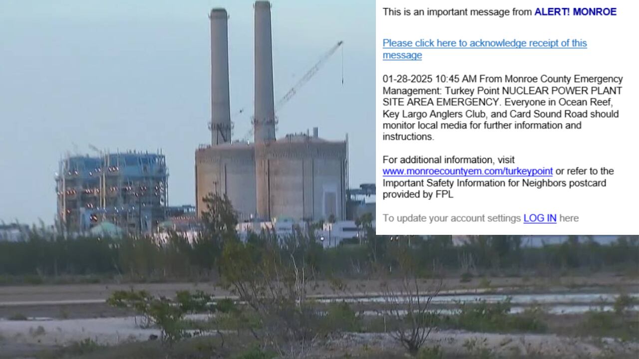 “From Monroe County Emergency Management: Turkey Point NUCLEAR POWER PLANT SITE AREA EMERGENCY,” the email, sent by the county at around 10:45 a.m., read. “Everyone in Ocean Reef, Key Largo Anglers Club, and Card Sound Road should monitor local media for further information and instructions.”