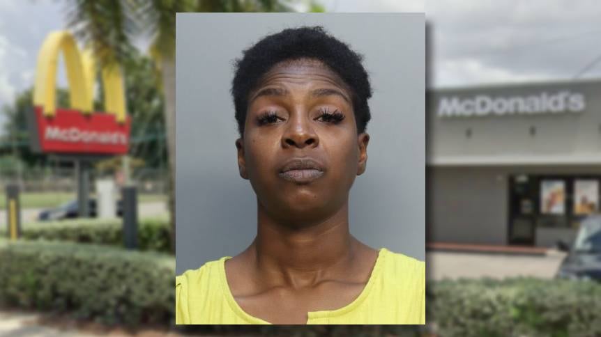 According to an arrest report, police responded to the Golden Arches at 299 SW Eighth St. just before 12:30 p.m. “in reference to a disturbance about a food order and possible allergic reaction to the food that was ordered.”