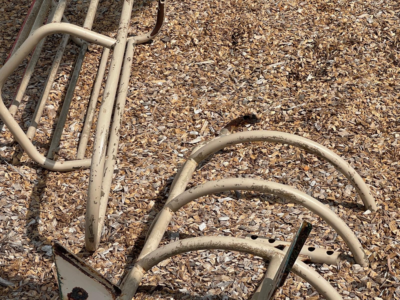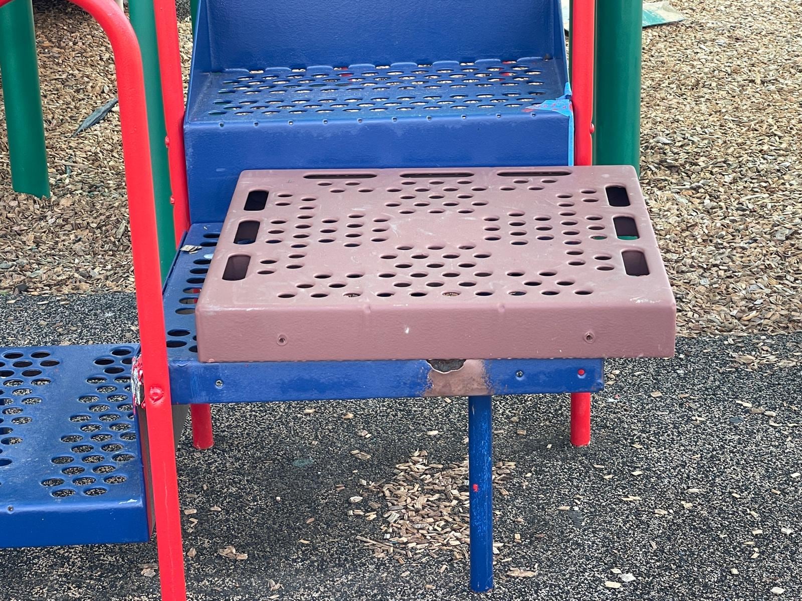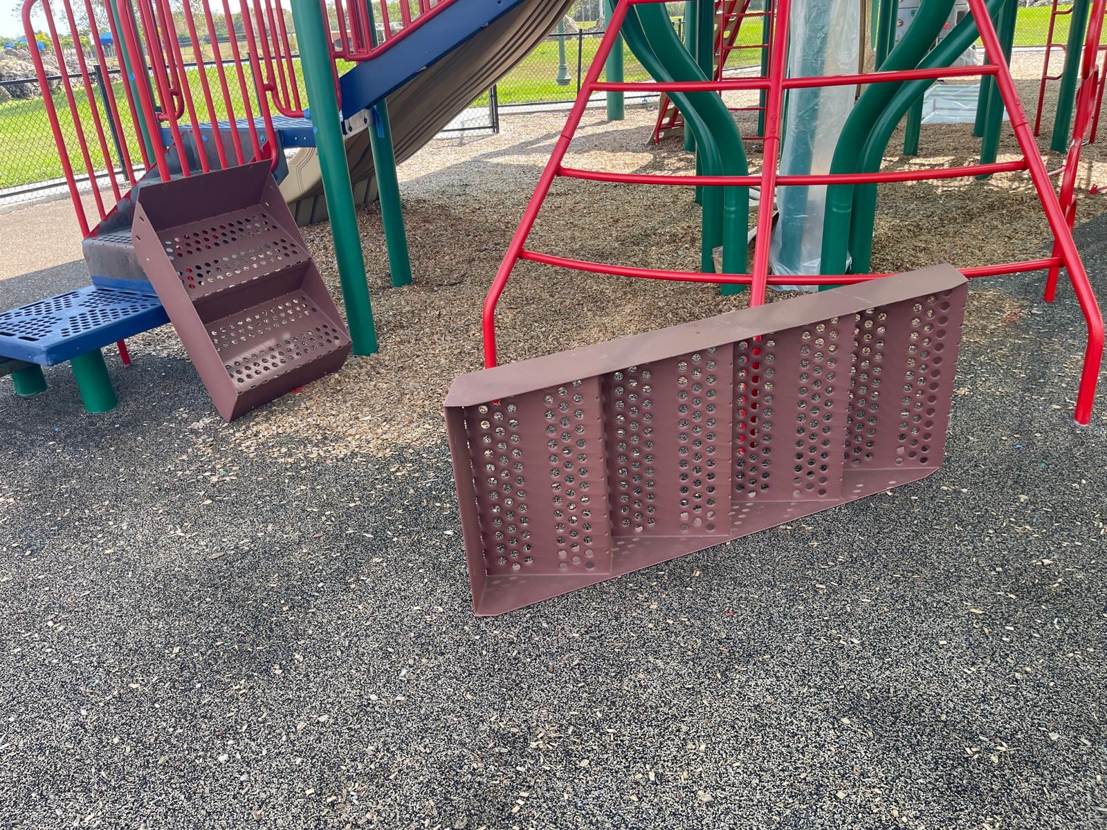 Photographs taken during our latest visit show that some of the most deteriorated sections highlighted in our original report are no longer in place. Fresh paint is visible on portions of the remaining structures, and construction materials are staged throughout the playground area.
