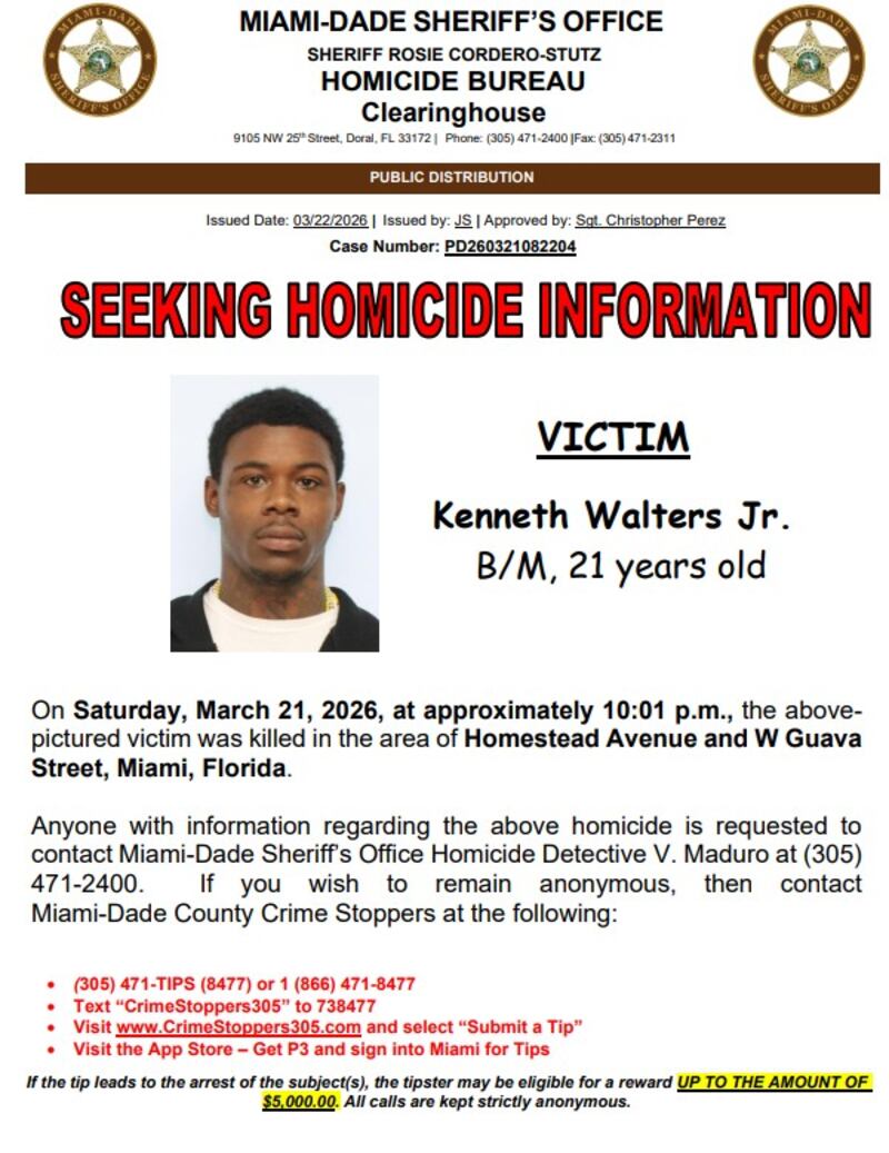 Detectives asked anyone with information about this or other cases to call Miami-Dade County Crime Stoppers at 305-471-8477 to remain anonymous.