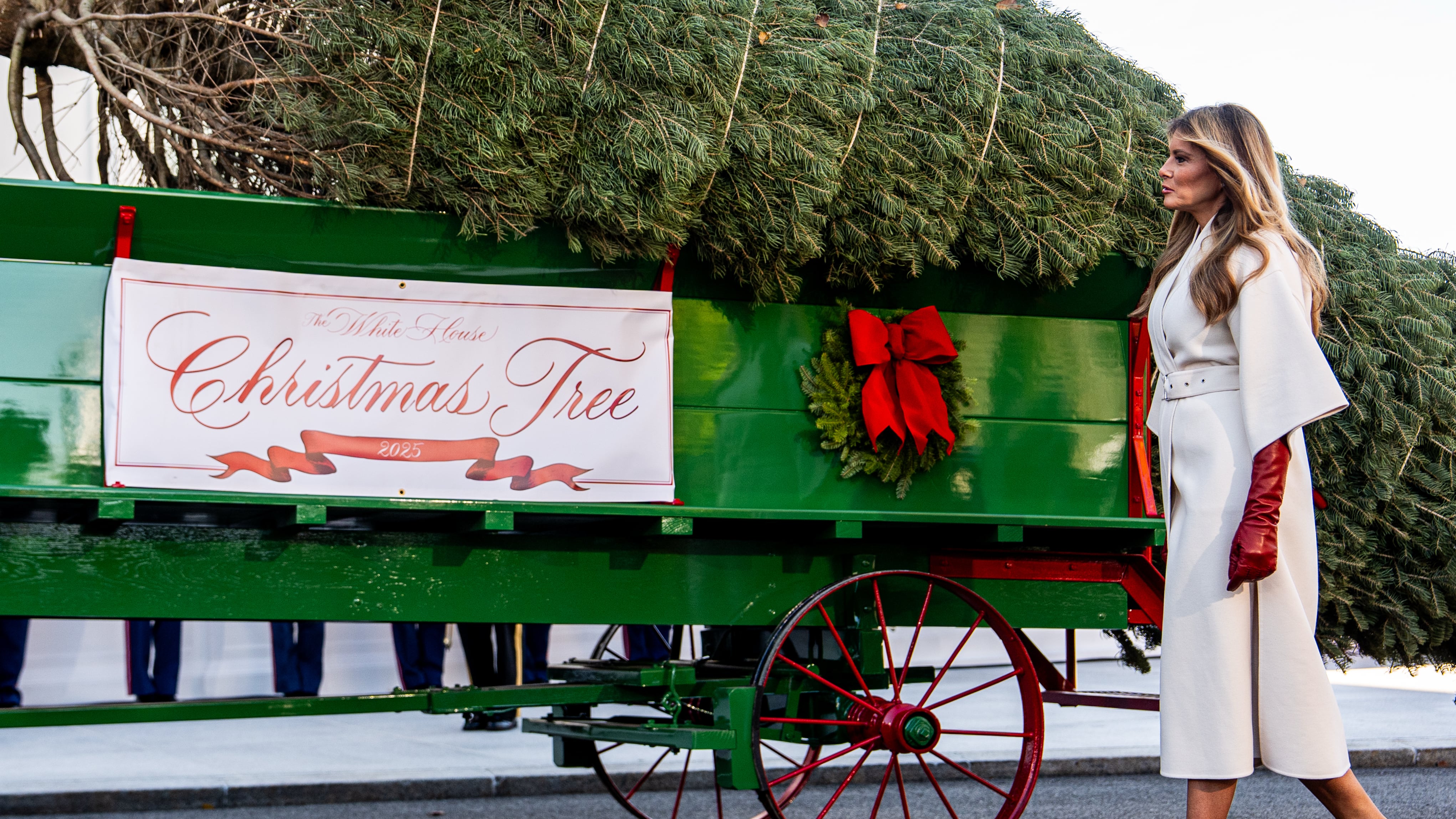 WASHINGTON (AP) — First lady Melania Trump welcomed this year's Christmas tree to the White House on Monday.