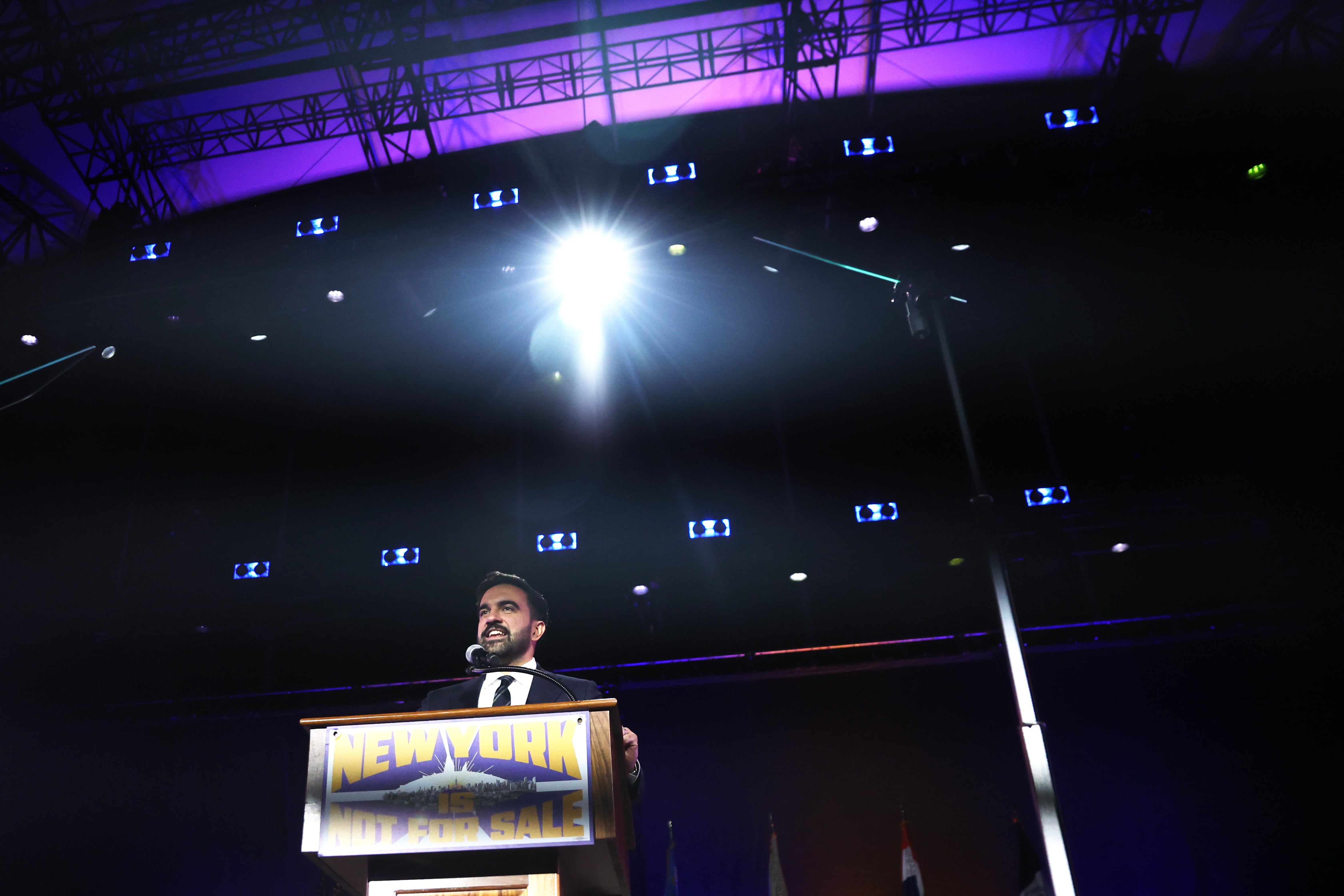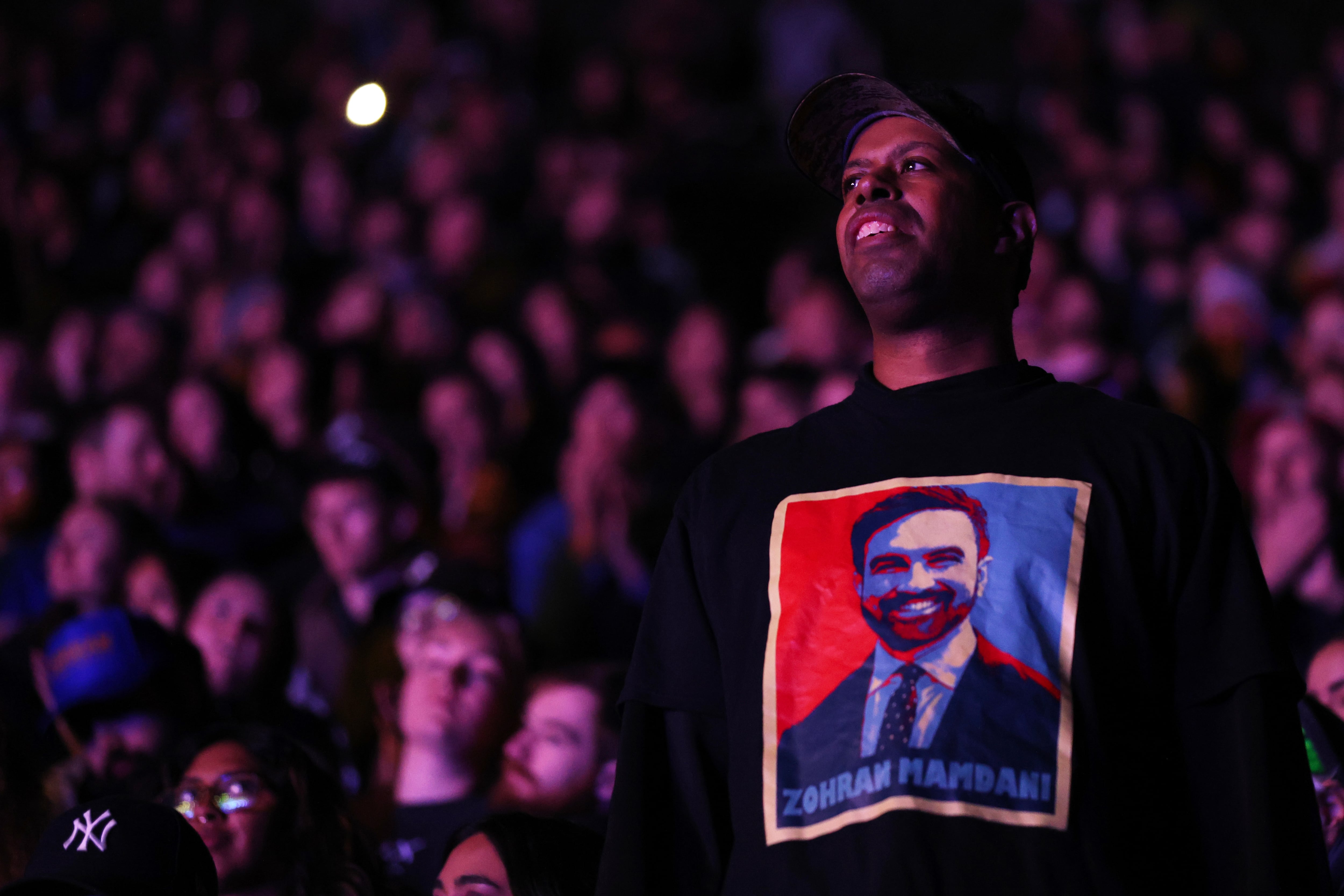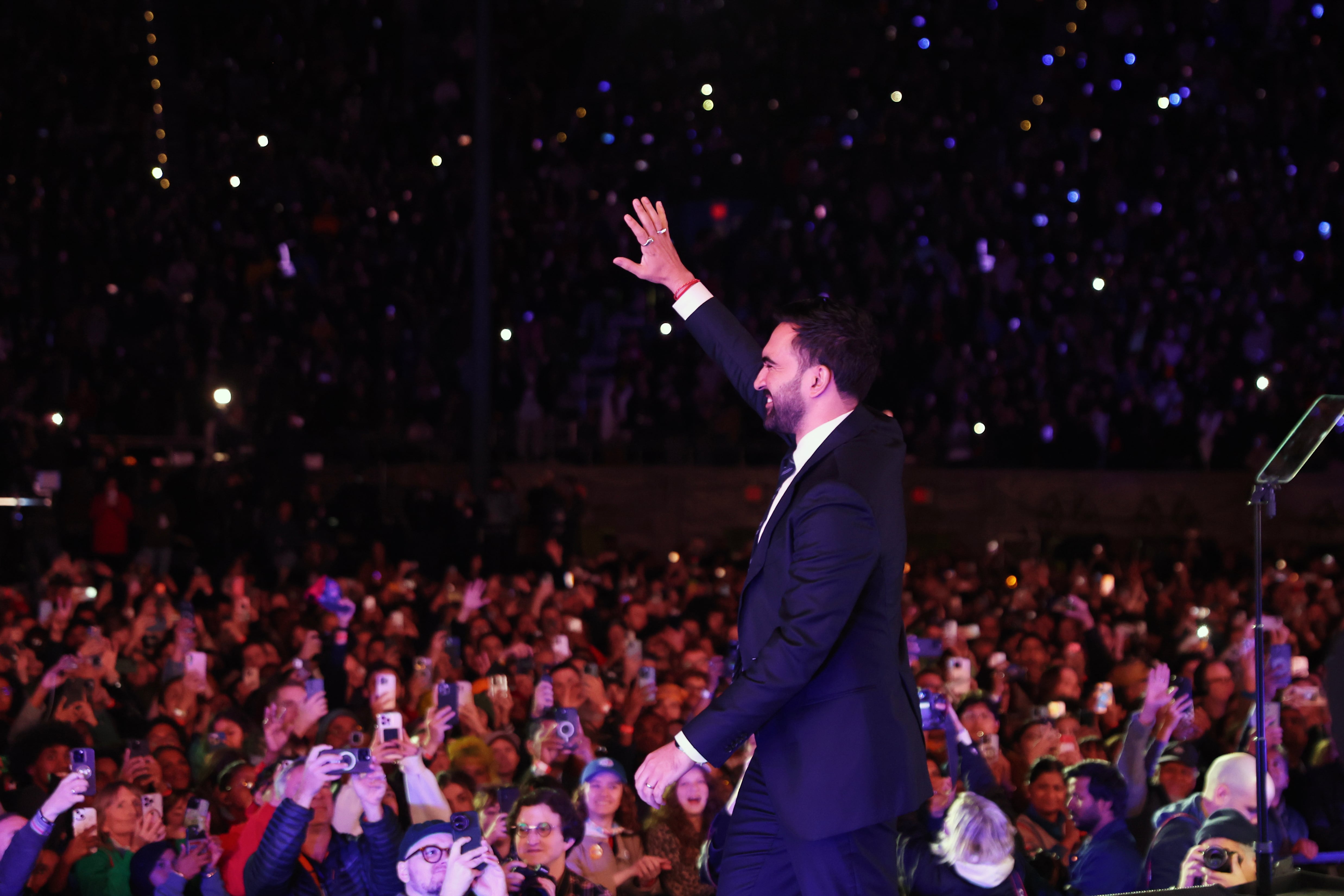 As the crowd chanted his name, Mamdani reiterated plans to hire thousands of new teachers, renegotiate city contracts, freeze rent for low-income residents, build more affordable housing and provide universal child care.