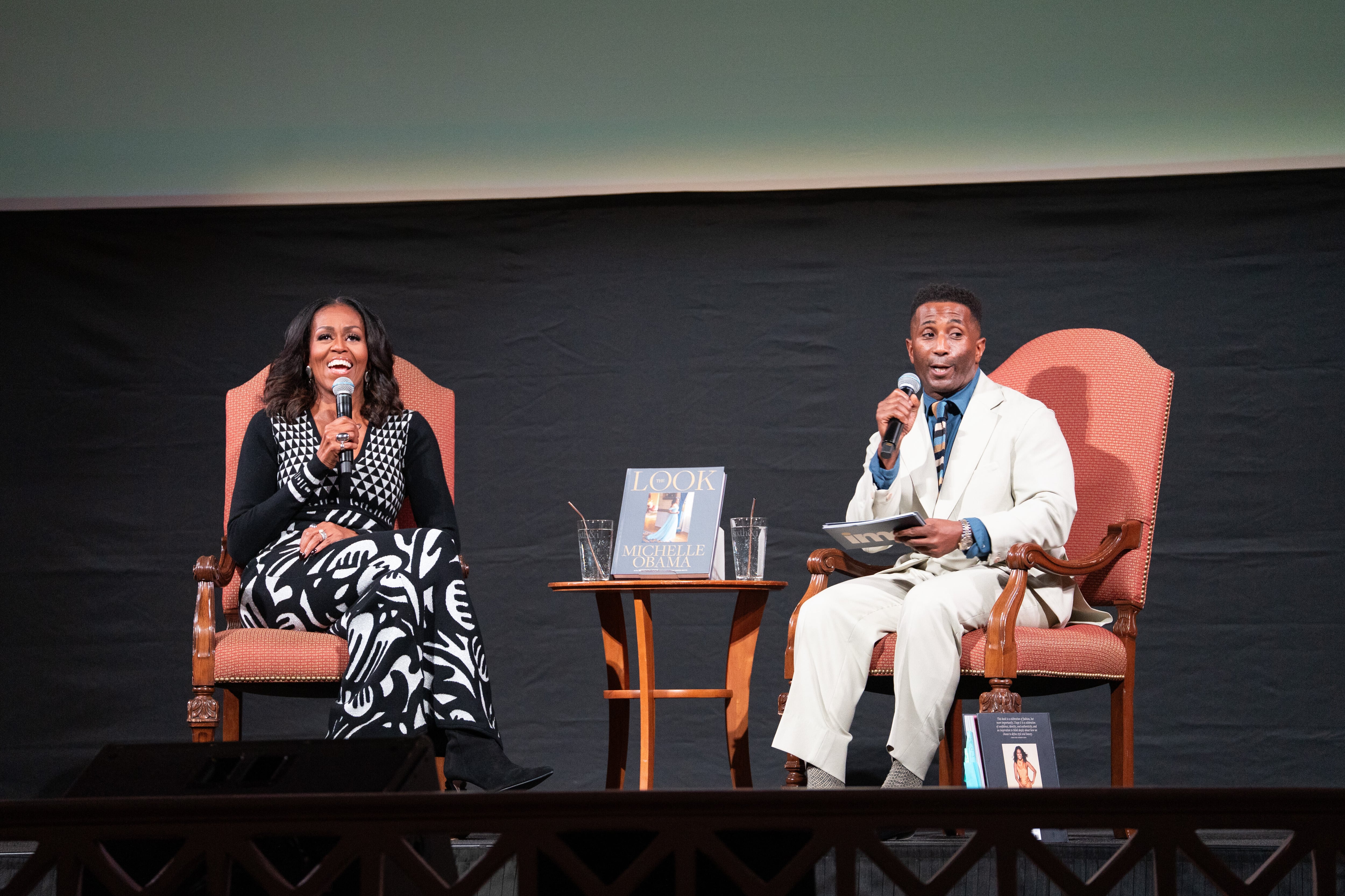 “I was concerned about, ‘Can I hug somebody in it? Will it get dirty?’” she said Wednesday night during a moderated conversation about her style choices dating back to growing up on the South Side of Chicago to when she found herself in the national spotlight as the first Black woman to serve in the role. “I was the kind of first lady that there was no telling what I would do.”