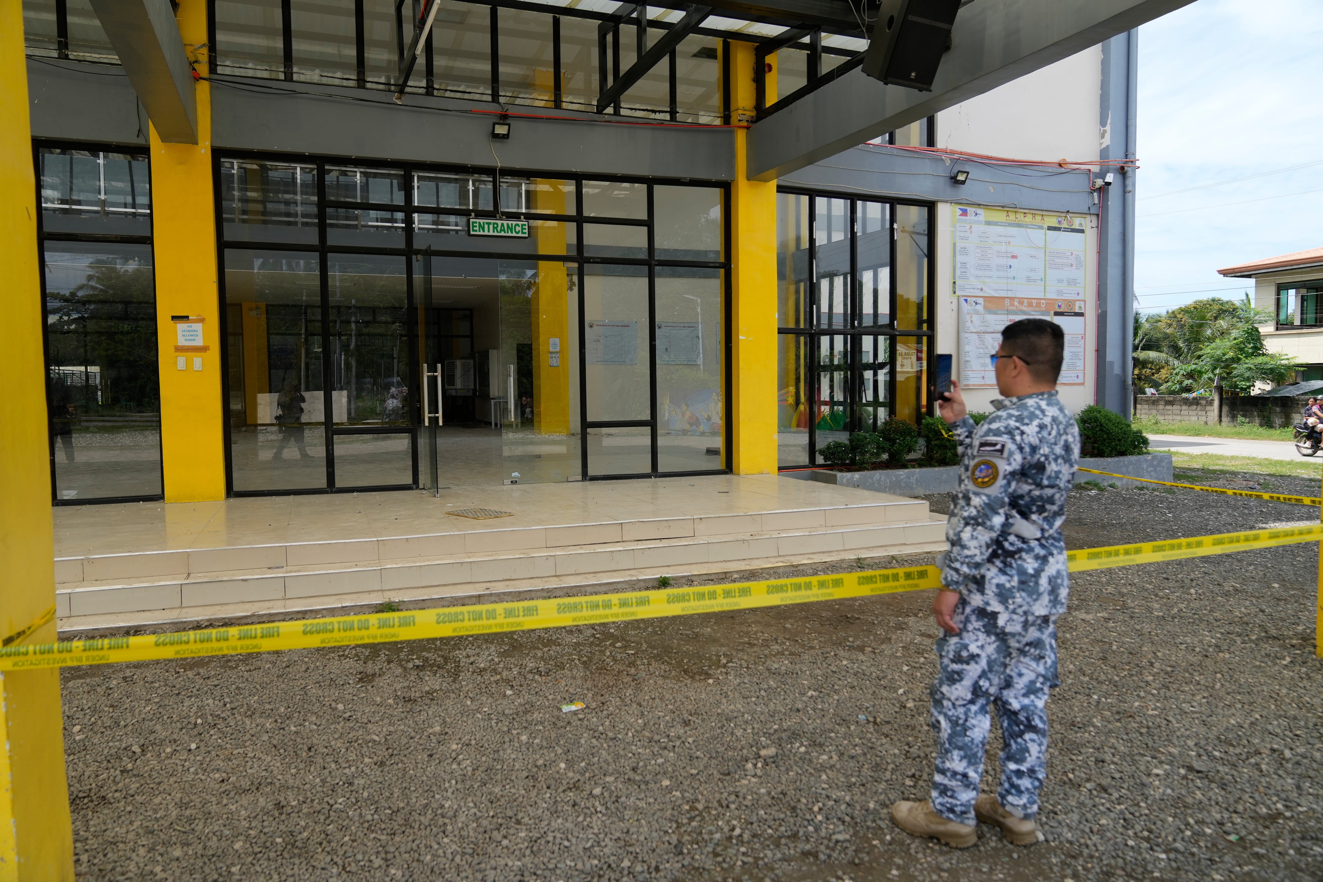 A gymnasium ceiling collapsed, killing three coast guard personnel and a firefighter. Sinangote said he tried to roll away but was partly trapped. He was later pulled free by members of the coast guard and treated for face and arm injuries.