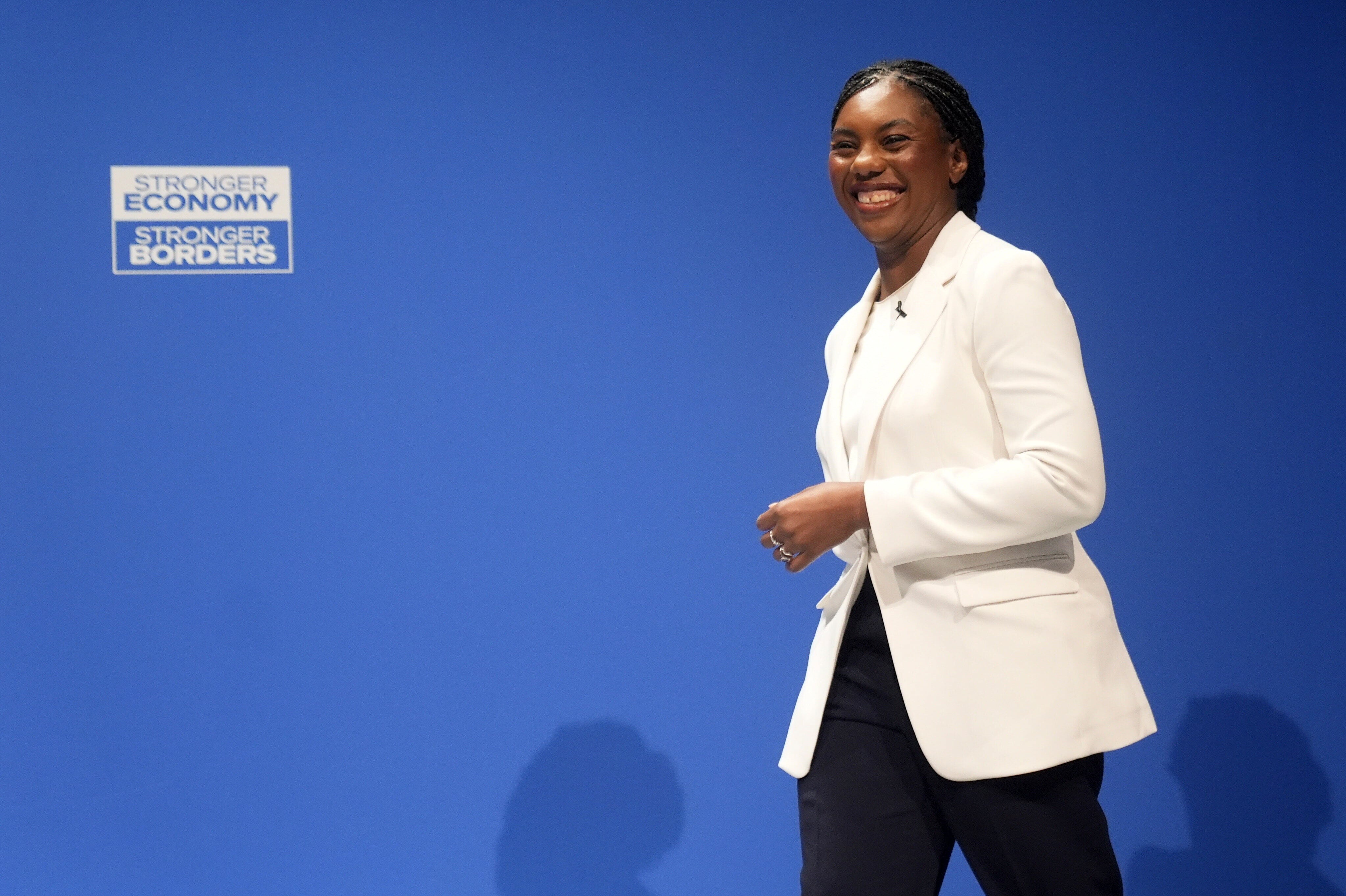 “Yes, we have a mountain to climb,” Conservative leader Kemi Badenoch told party members at their annual conference, which ends Wednesday in Manchester. “But we have a song in our hearts, and we are up for the fight.”
