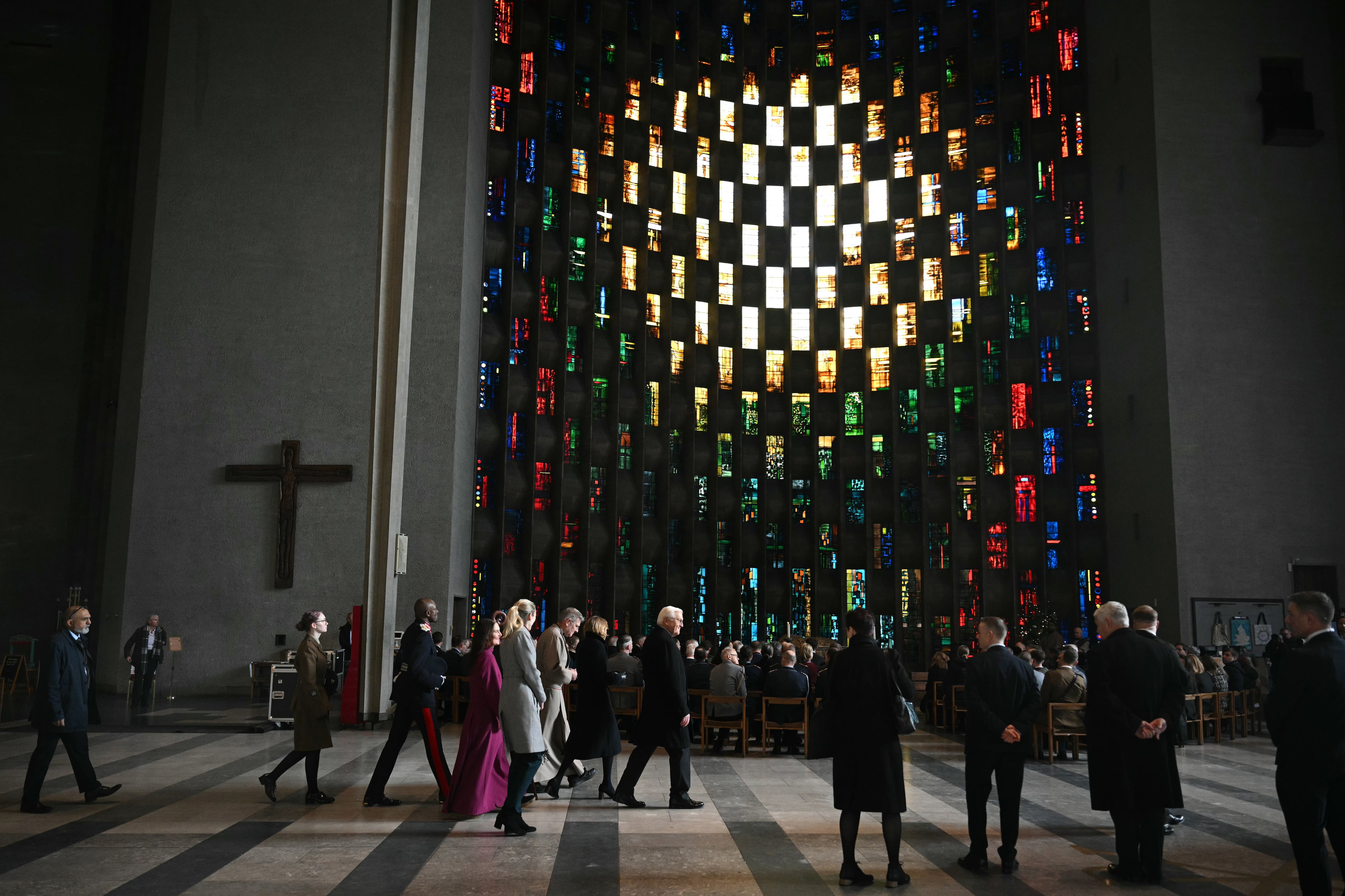 Frank-Walter Steinmeier’s pilgrimage commemorates the Nazi bombing of Coventry on the night of Nov. 14, 1940, which destroyed the 14th-century Gothic cathedral, leaving behind a roofless ruin that stands as a reminder of the ravages of war. At least 568 people were killed and more than half of Coventry’s homes were damaged or destroyed in what was the single most concentrated attack on a British city during the war.
