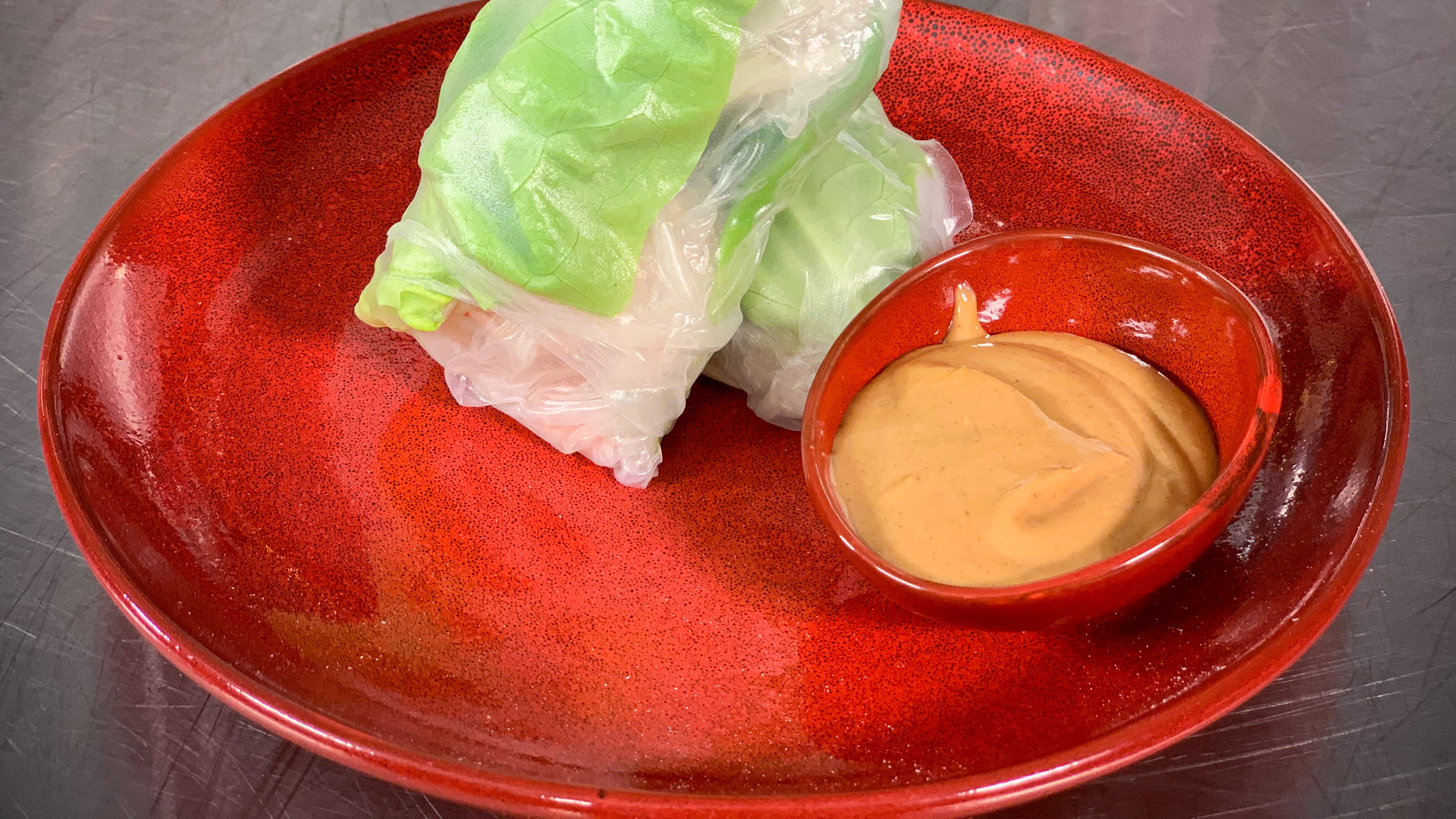 Serve the rolls with a lettuce leaf wrapped around them and peanut sauce for dipping, if desired.