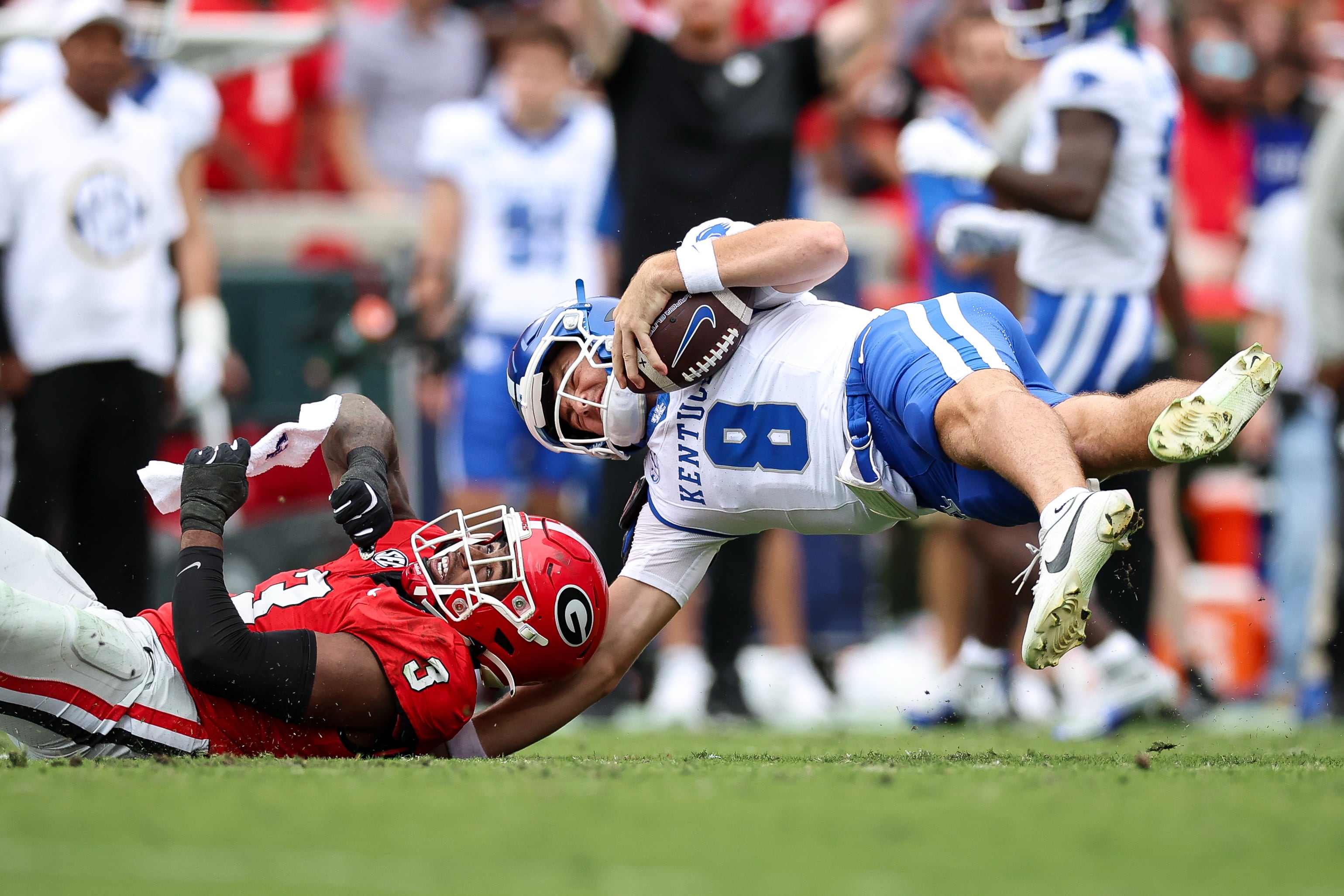 Kentucky: The Wildcats simply made too many mistakes to have any chance of an upset. Poor time management at the end of the first half and a fumble on their first possession of the third quarter allowed the Bulldogs to pull away. And Jacob Kauwe missed a 26-yard field goal to end the first half. Kentucky has now gone 3-9 since a huge upset at Mississippi early last season, with no wins against Power Four opponents.