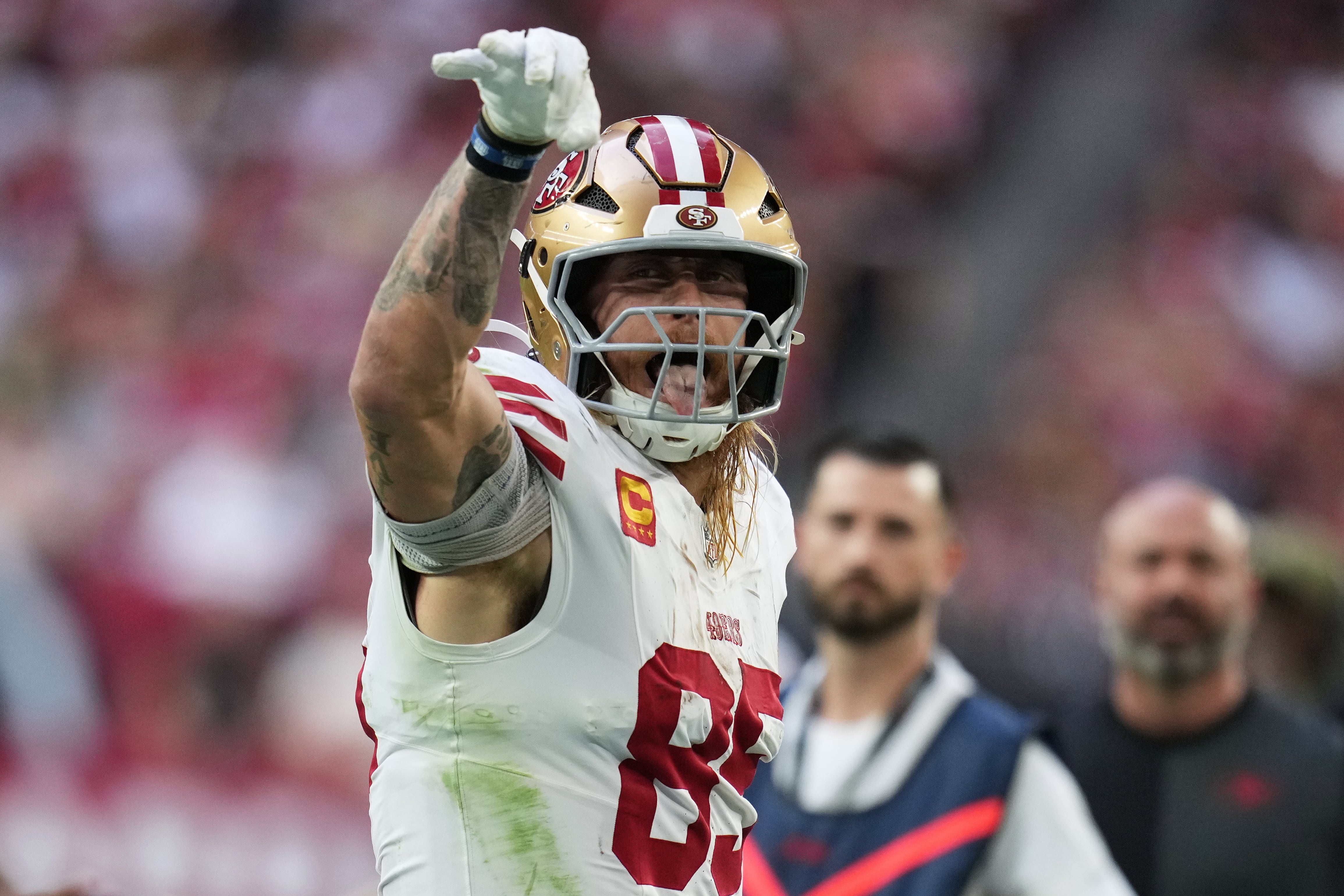 McCaffrey extended his NFL record with his 17th career game with at least one running touchdown and a touchdown catch. Purdy completed 19 of 26 passes for 200 yards.