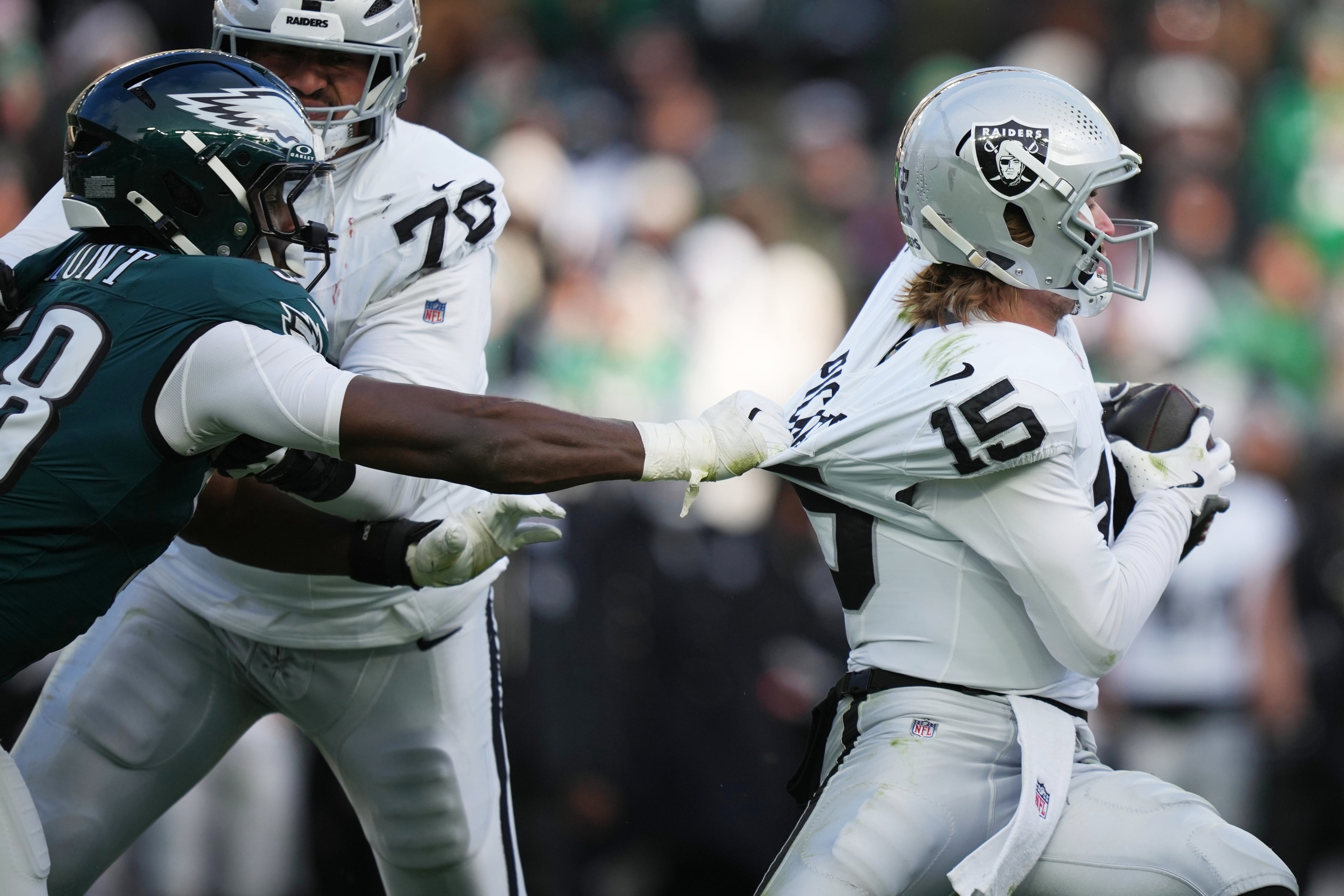 The Eagles (9-5) were able to get their maligned offense under embattled coordinator Kevin Patullo right against the woeful Raiders and finally showed signs of life with a nice mix of play calling in bitter cold temperatures and topped 21 points for the first time in six games.