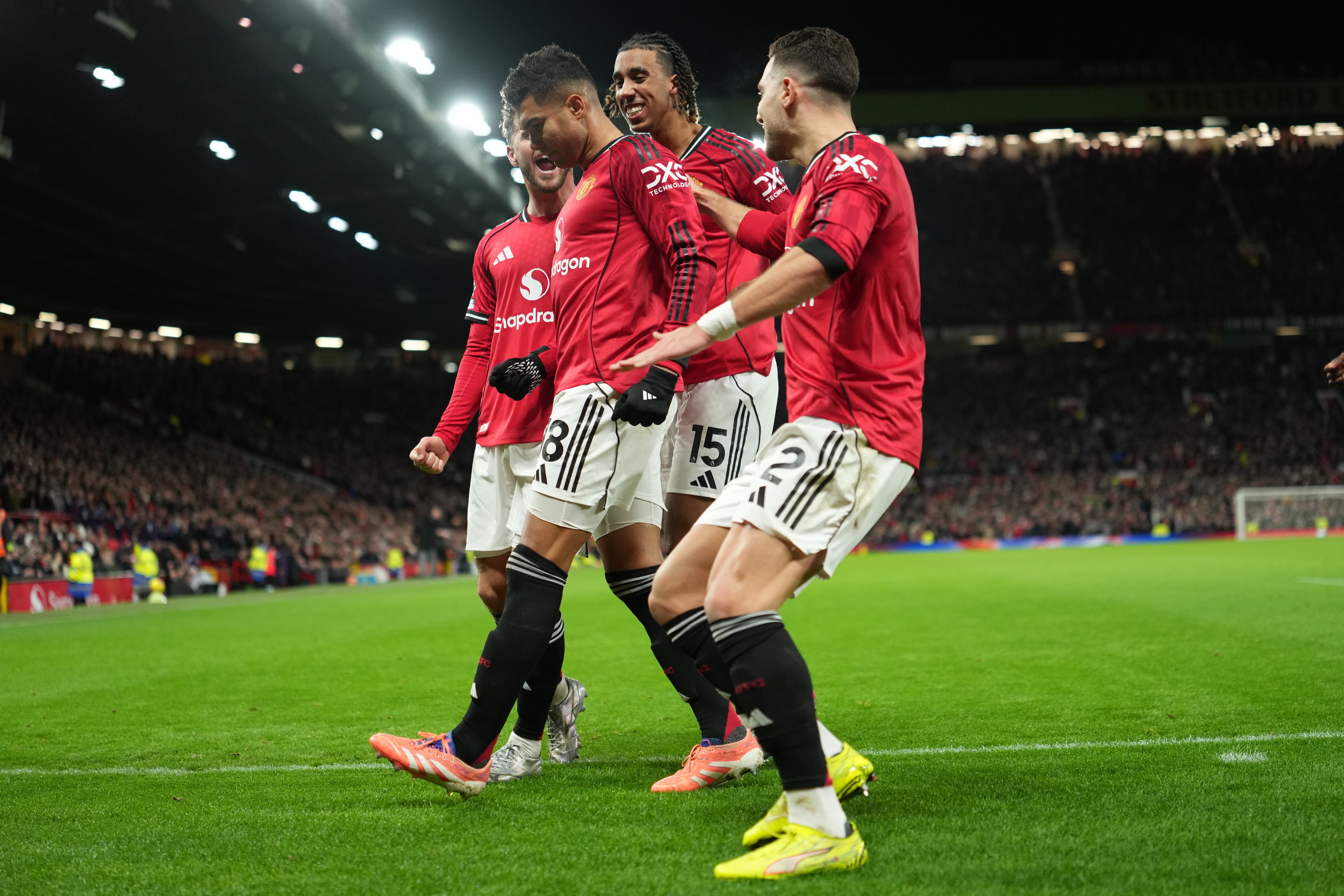 Diogo Dalot’s lofted cross fell to Amad Diallo to nod in almost on the goal line.