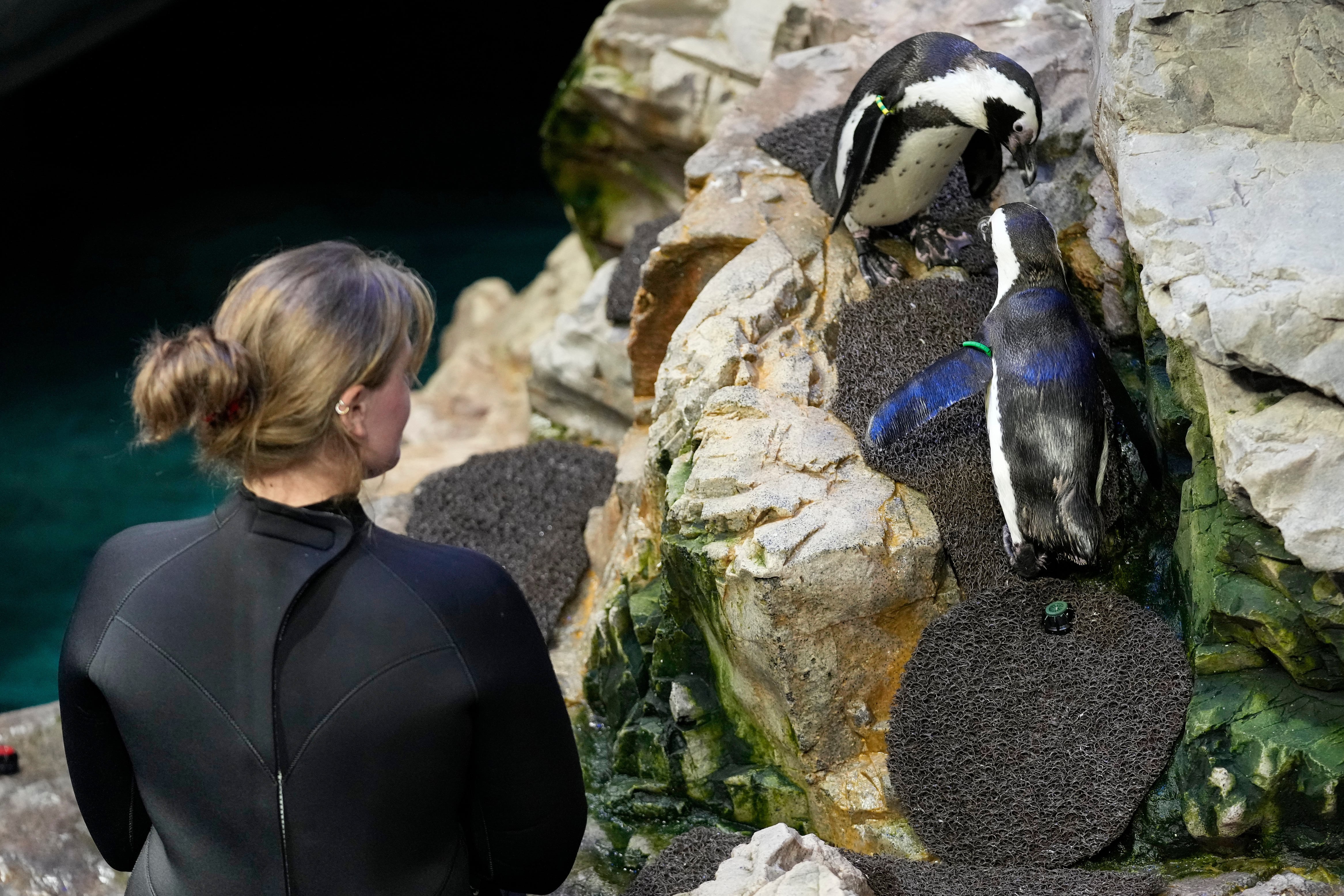 As a result, Mia Luzietti, a senior penguin trainer at the aquarium, said she has seen Lambert become more active since moving to the new island — swimming more with his mate and getting off the island more often.