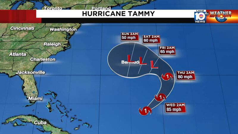 The official forecast calls for Tammy to become post tropical as it begins to bend west by late week. Though the structure of the storm will resemble a wintertime low pressure, strong winds above tropical storm strength will continue with the system into the weekend.