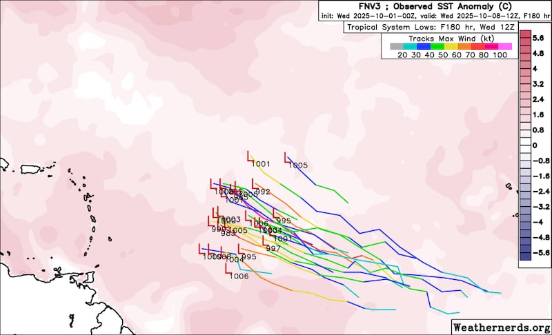 As we mentioned in Tuesday’s newsletter, models do suggest the possibility of another system in the eastern and central Atlantic in about a week. It’s a little unusual to get development this far east into October, but we’ll keep an eye on the trends just in case it sneaks far enough west to pose any issue for the islands.