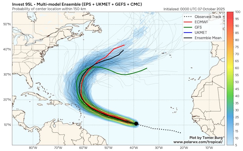 It’s worth noting, however, that most models, including the consensus, still steer the system north of the islands, but there’s more than enough wiggle room that interests in the Leeward Islands will want to follow the forecasts closely.