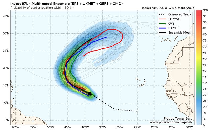 The system models are sniffing out is a tropical wave that’s only now emerging off the west coast of Africa.