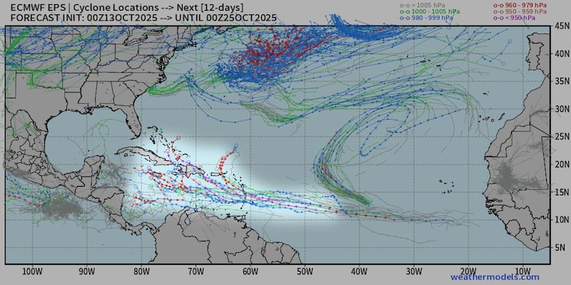 Longer range forecast models are beginning to home in on possible development in the Caribbean for the middle to latter part of next week (October 22-25), something we first mentioned in this newsletter last Friday.