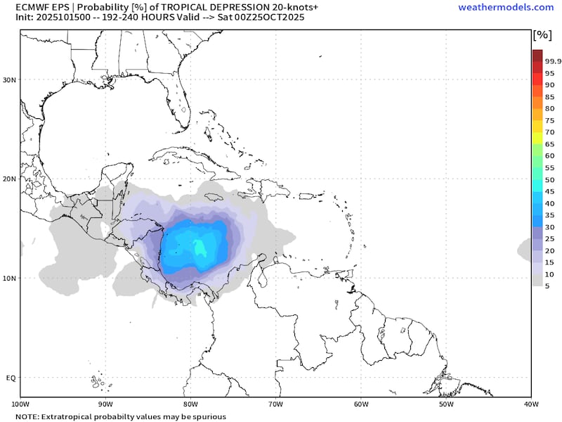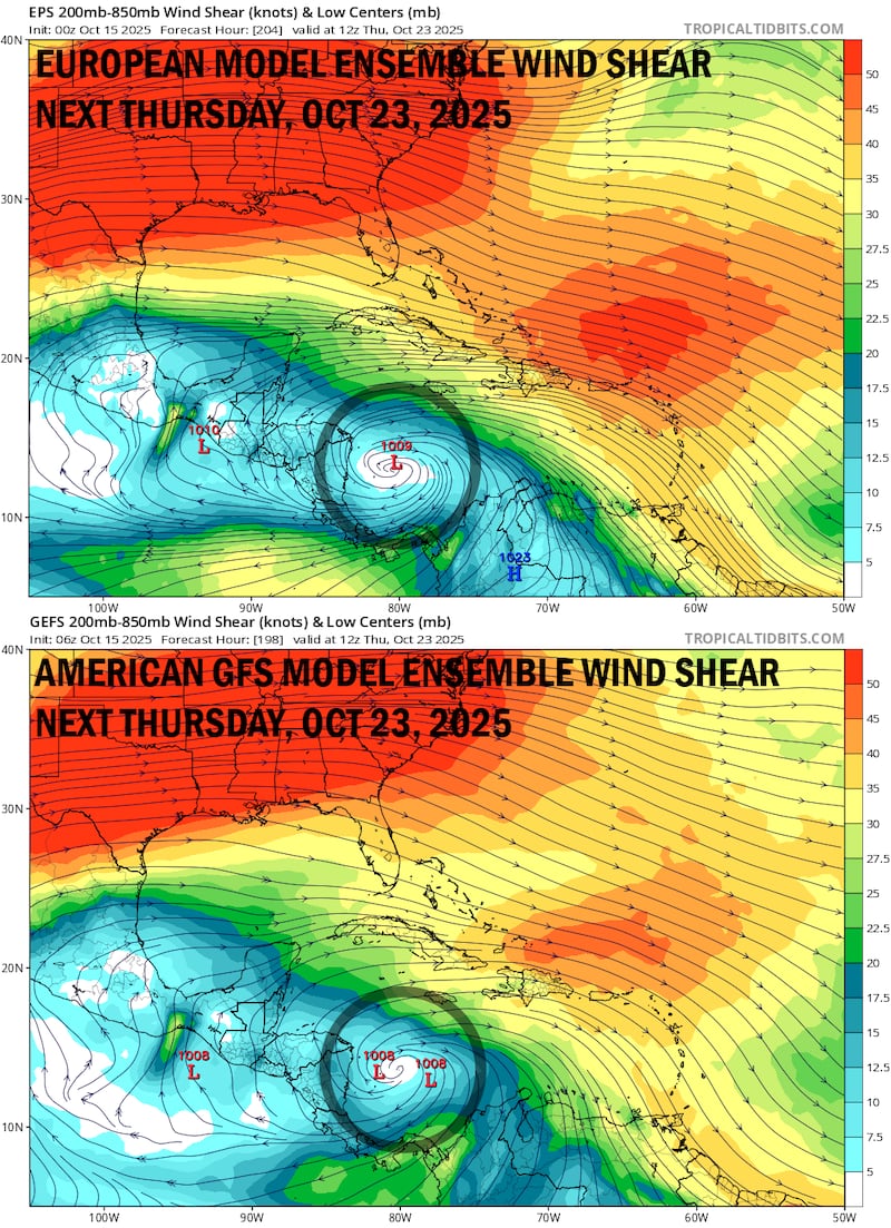 Unlike Lorenzo’s location this week in the central Atlantic, the western Caribbean is a breeding ground for tropical storms and hurricanes in October and November, so climatology favors the area.