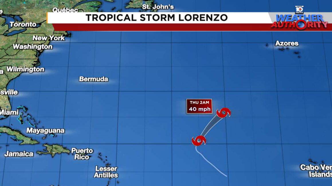 Lorenzo is forecast to dissipate by tomorrow over the open Atlantic and poses no threat to land.