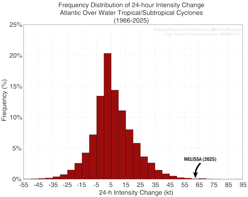 Melissa wasted no time harvesting a rich reservoir of warm water in the central Caribbean south of Jamaica on Saturday to intensify at an extreme rate – from a 70 mph tropical storm Saturday morning to a 140 mph Category 4 hurricane before sunrise Sunday.