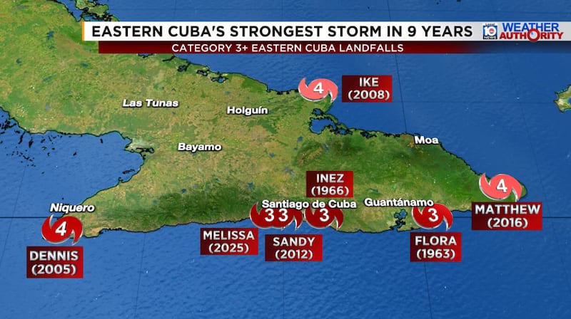 With estimated winds of 120 mph at second landfall, Melissa was the strongest hurricane to hit eastern Cuba since Hurricane Matthew in 2016.
